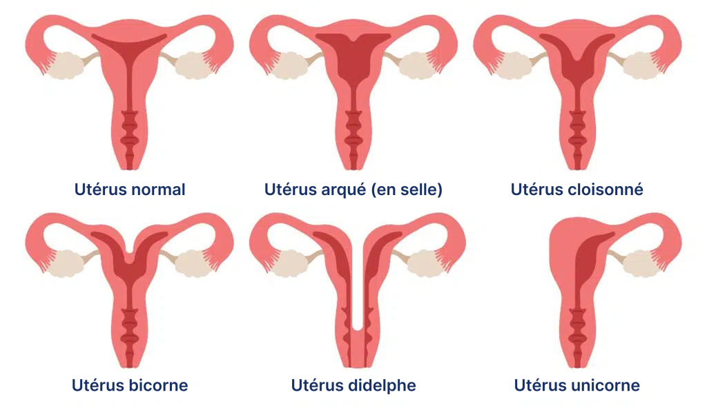 - La forme externe de l’utérus (utérus bicorne, en selle…)
